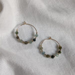 Beautifully cut tourmaline gemstones with warm green tones blended with gold beads. Also available in a mix of pink and green gemstones as shown.