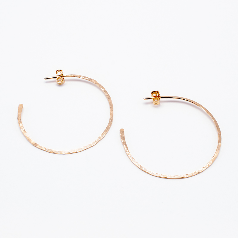 These earrings are super light and comfy to wear, finished with a hammered texture to catch the light. Wear solo or mix and match with different studs & hoops to create your personal look.